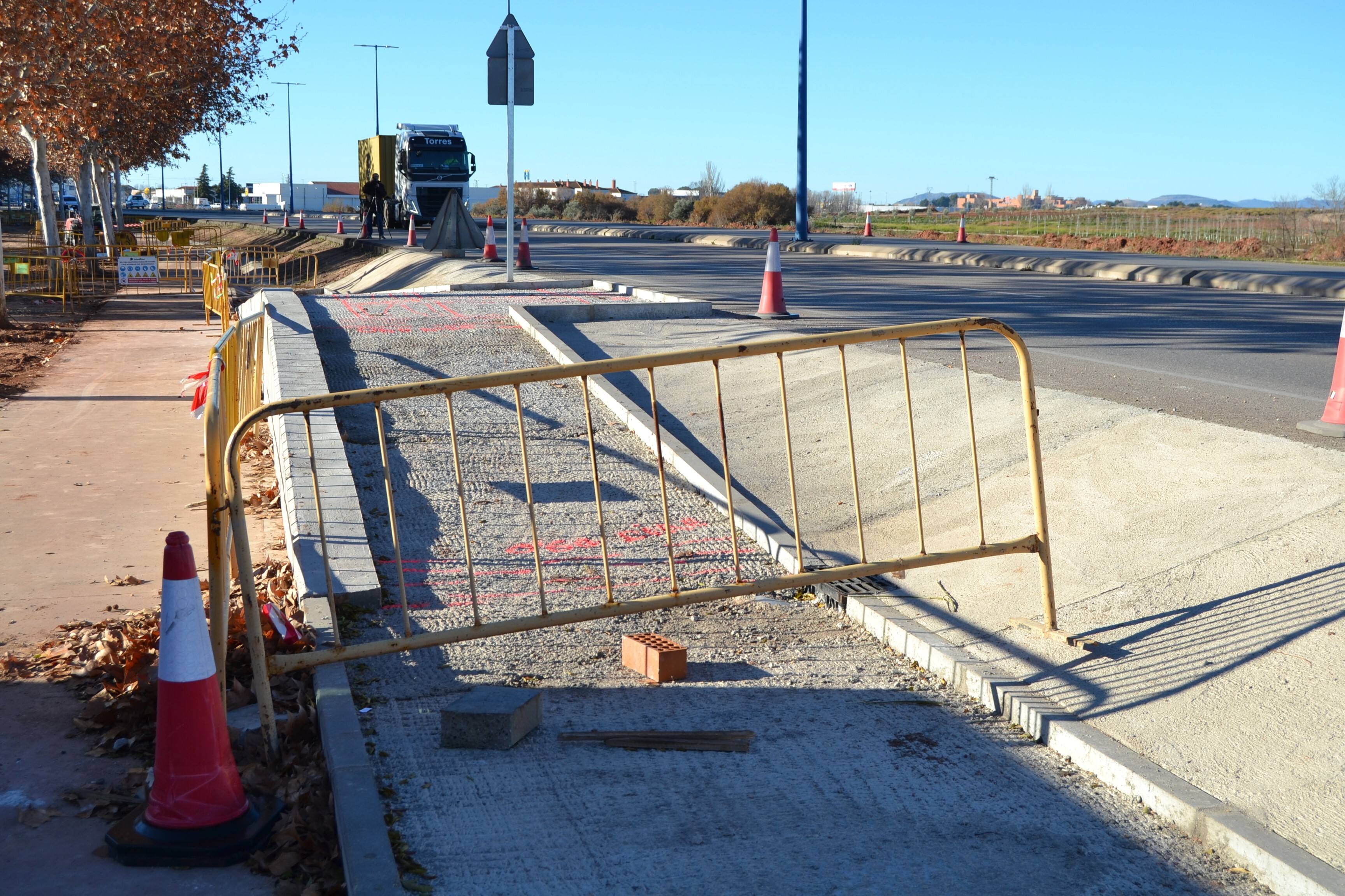 La obra, que tiene un presupuesto de 235.000 euros, consiste básicamente en conectar la zona urbana con el Bosque de la Vida, y para ello se está haciendo un acerado de conexión de la parte que llega desde la rotonda de la Avenida de los Institutos hasta llegar a la zona donde se habilitará un paso de peatones elevado para cruzar.