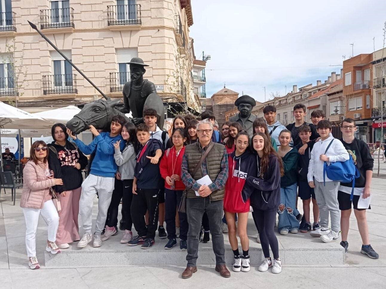 Esta última actividad ha sido coordinada por la Sociedad Cervantina de Alcázar de San Juan y los alumnos de los diversos grupos, han iniciado el recorrido en la estatua de Alonso con su gato (junto a Aguas de Alcázar), posteriormente han visitado la estatua del Quijote Cósmico (realizada por Santiago de Santiago) en la plaza de Palacio, la iglesia de Santa María la Mayor, donde se conserva una partida de bautismo de Miguel de Cervantes Saavedra con fecha nueve de noviembre de 1558.