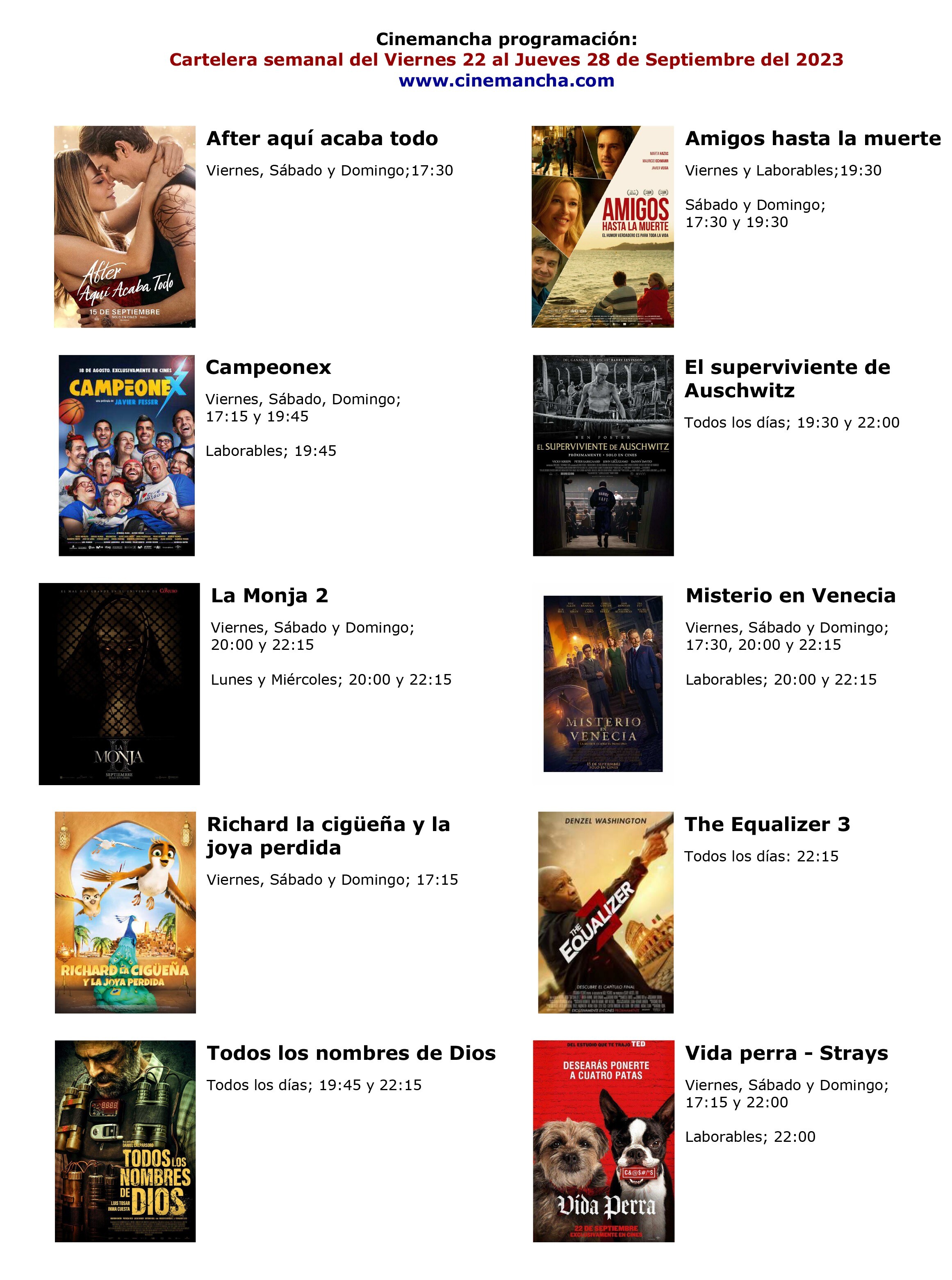 Los ganadores de este viernes, 1 de septiembre, para las entradas de CINEMANCHA son: