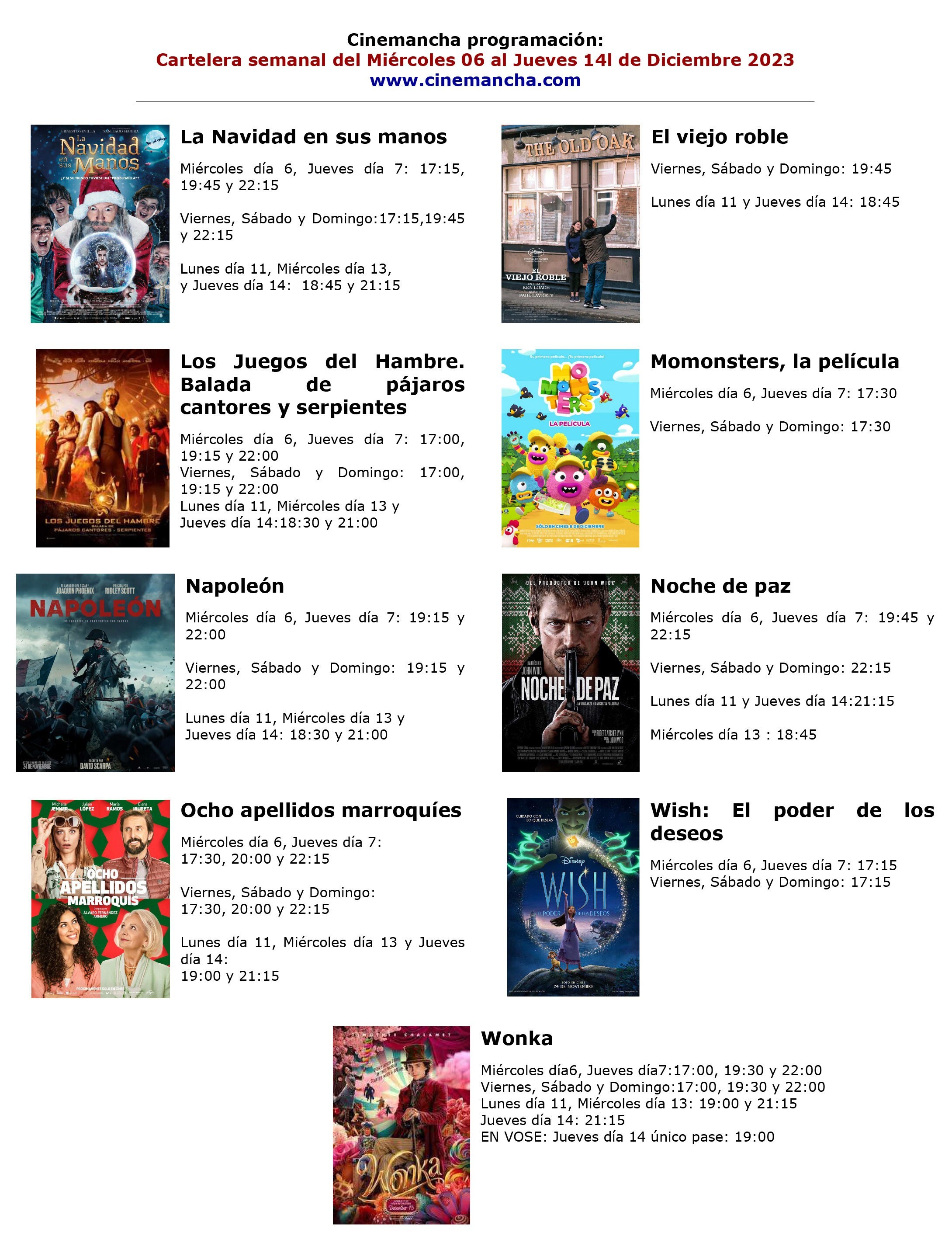 Cartelera de Multicines Cinemancha del miércoles 6 al jueves 14 de diciembre