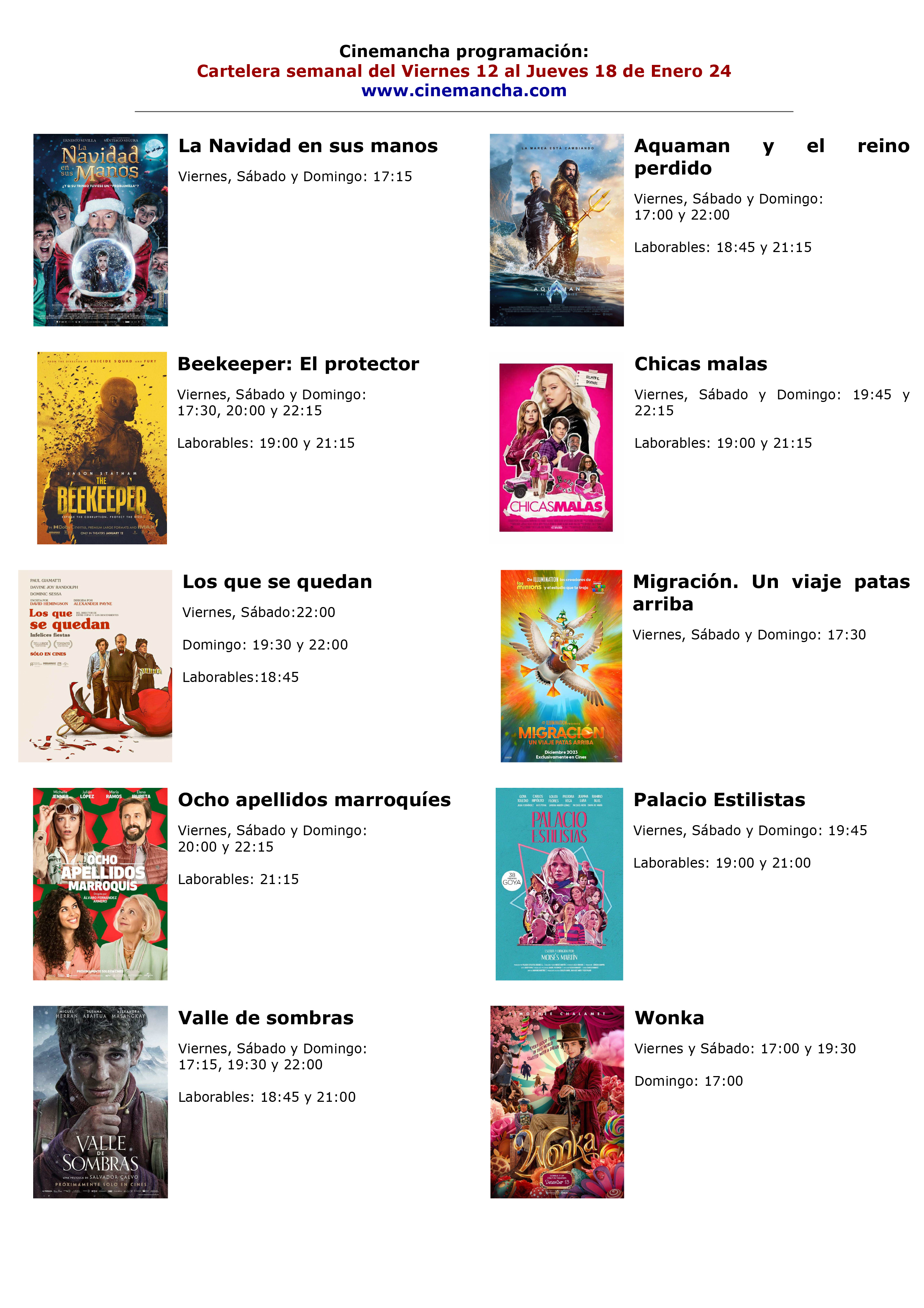 CARTELERA DEL 12 AL 18 DE ENERO DE 2024