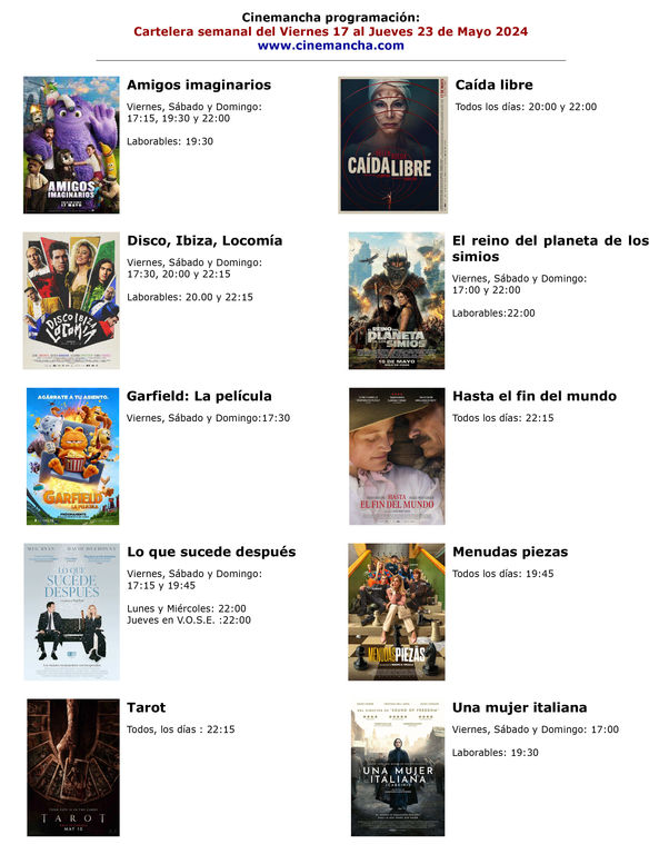 El próximo viernes nuevo sorteo, permanece atento a la cartelera CINEMANCHA