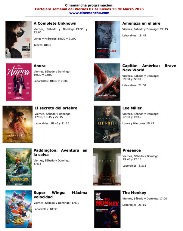 El próximo viernes nuevo sorteo, permanece atento a la cartelera CINEMANCHA