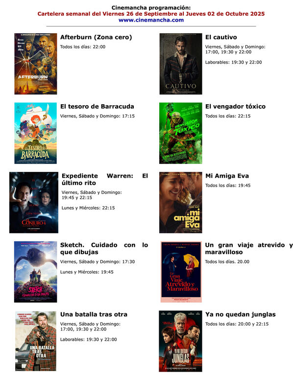 Los ganadores del sorteo de esta semana para las entradas de CINEMANCHA y que podrán disfrutar de una sesión de cine son: