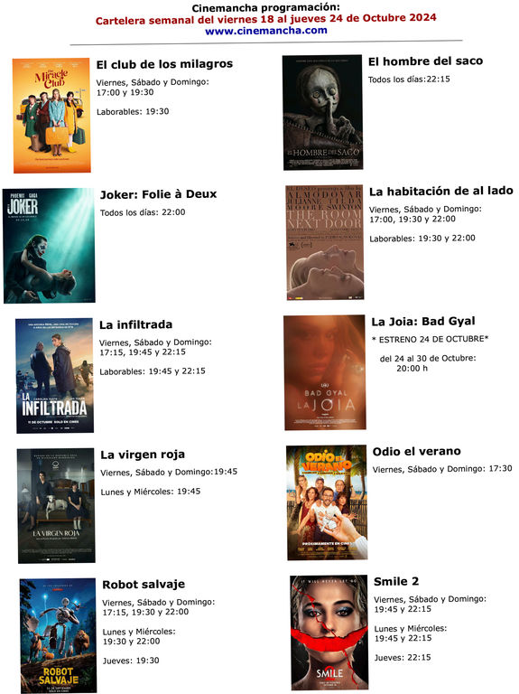 Cartelera Cinemancha del viernes 18 al jueves 24 de octubre