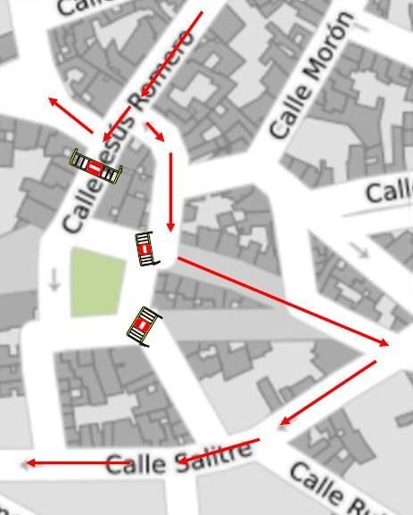 El itinerario alternativo es el siguiente: Desde calle Jesús Romero hacia plaza Palacio, calle Presbítero Antonio Peñuela, Reyes Católicos y Salitre (prohibido a vehículos de más de 3,5 Toneladas, excepto los autorizados para la obra)