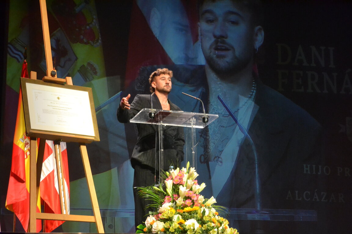 La entrega de la distinción ha dado paso a uno de los momentos más esperados: el discurso del propio homenajeado. Dani Fernández, visiblemente emocionado, ha repasado con sinceridad su recorrido personal y profesional, agradeciendo a su familia, a sus amigos y al pueblo de Alcázar el apoyo incondicional que ha recibido desde sus inicios.