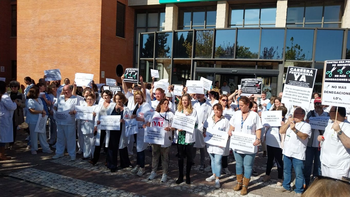 Decenas de sanitarios y personal del área Mancha Centro se concentran contra los recortes presupuestarios