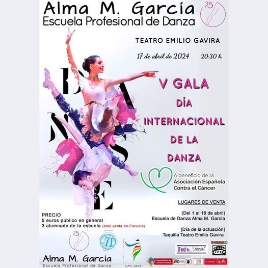 La Escuela Profesional de Danza Alma María García presenta su V Gala por el Día Internacional de la Danza, que se celebrará el día 17 de abril a las 20:30 horas en el Teatro “Emilio Gavira” de Alcázar de San Juan.