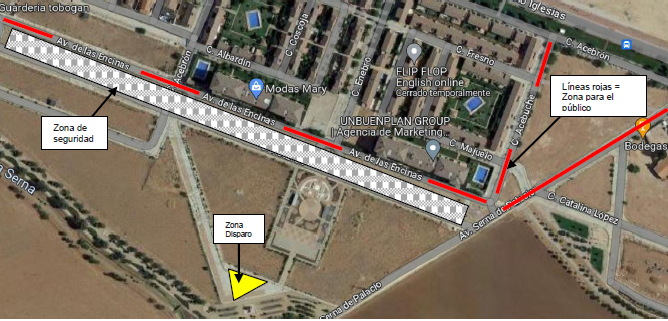 Pólvora inaugural: El espectáculo de pólvora que marca el inicio de la Feria tendrá lugar después del corte de cinta e inauguración del recinto ferial, (a las 00 horas del día 2). Los espectadores podrán disfrutarlo desde la ubicación habitual, así como desde la Avda. de las Encinas. En el plano de arriba se pueden ver los detalles de la ubicación.