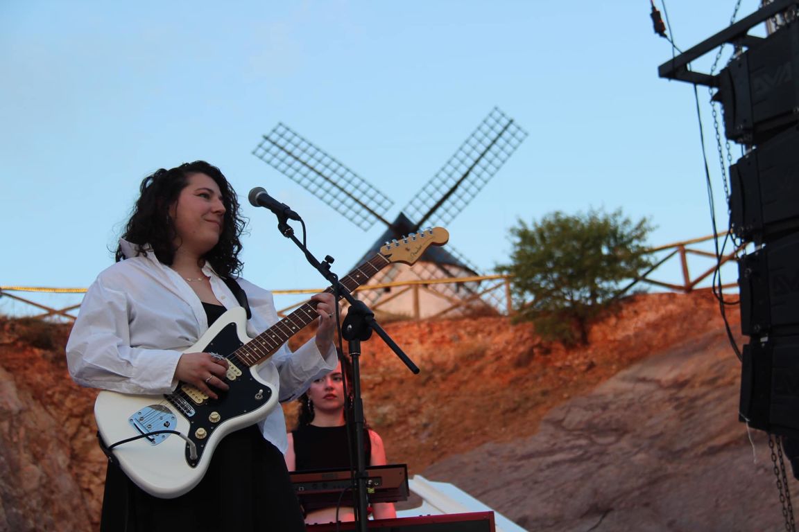 Ya es un espectáculo ver anochecer en el Auditorio Corazón de la Mancha, donde además tuvimos el privilegio de contar con varias actuaciones. La cantante Eva Mcbel daba el pistoletazo de salida a las 21.00 donde la temperatura comenzaba a ser agradable, todavía sin mucho público, ya que la hora no era la mejor, la joven cantautora zaragozana nos sedujo con su maravillosa voz, con algunos temas en español y otros en inglés se ganó al público, con la canción “1899”, dedicada a su abuela, pasando por “Saint”, para despedirse con “From Now On”, una de sus mejores canciones sin lugar a duda para el que escribe.