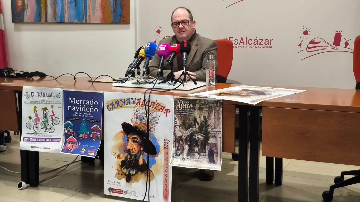 Alcázar de San Juan se prepara para vivir un intenso calendario festivo con más de 40 días de celebraciones entre la Navidad, la llegada de los Reyes Magos y el tradicional Carnavalcázar. Así lo ha anunciado este jueves el concejal de Festejos, Javier Castellanos, durante la presentación oficial de la programación que, según ha explicado, arrancará el sábado 29 de noviembre con el encendido del alumbrado y la inauguración del mercado navideño, y se prolongará hasta el 28 de diciembre, con el tradicional Duelo y Entierro de la Sardina y posteriormente con los actos de Reyes Magos.