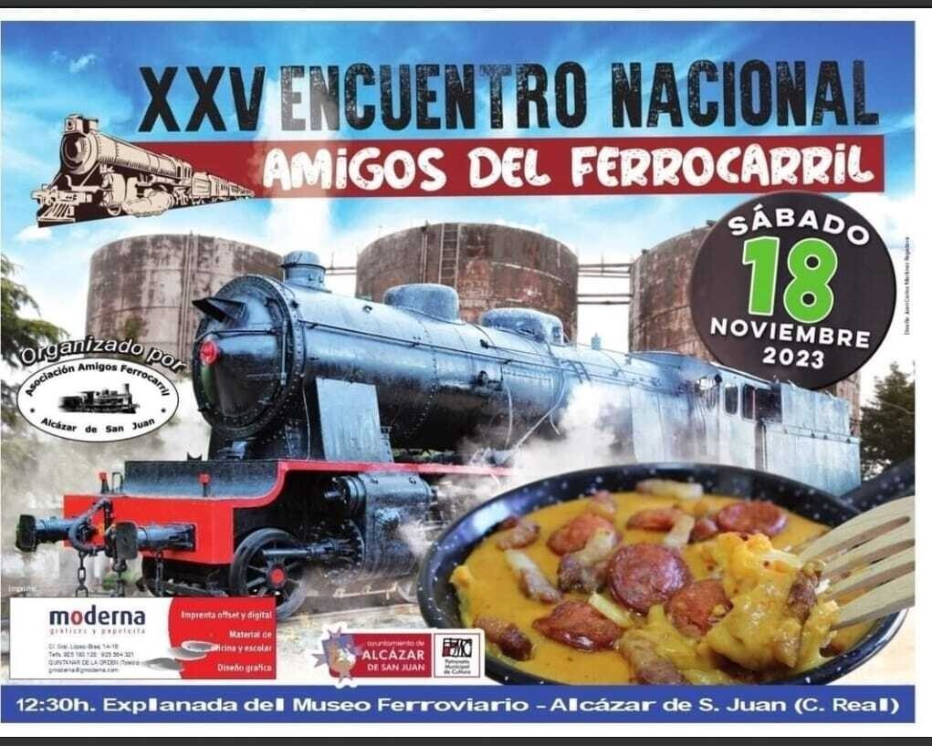 Las gachas ferroviarias, es decir el Encuentro Nacional de Asociaciones de Amigos del Ferrocarril y trabajadores de Renfe y Adif que todos los años se celebra en Alcázar de San Juan y que este año cumple 25 años, se celebrará el sábado 18 de noviembre en la explanada situada al final de los andenes, junto al museo molino, a partir de las 12:30 horas.