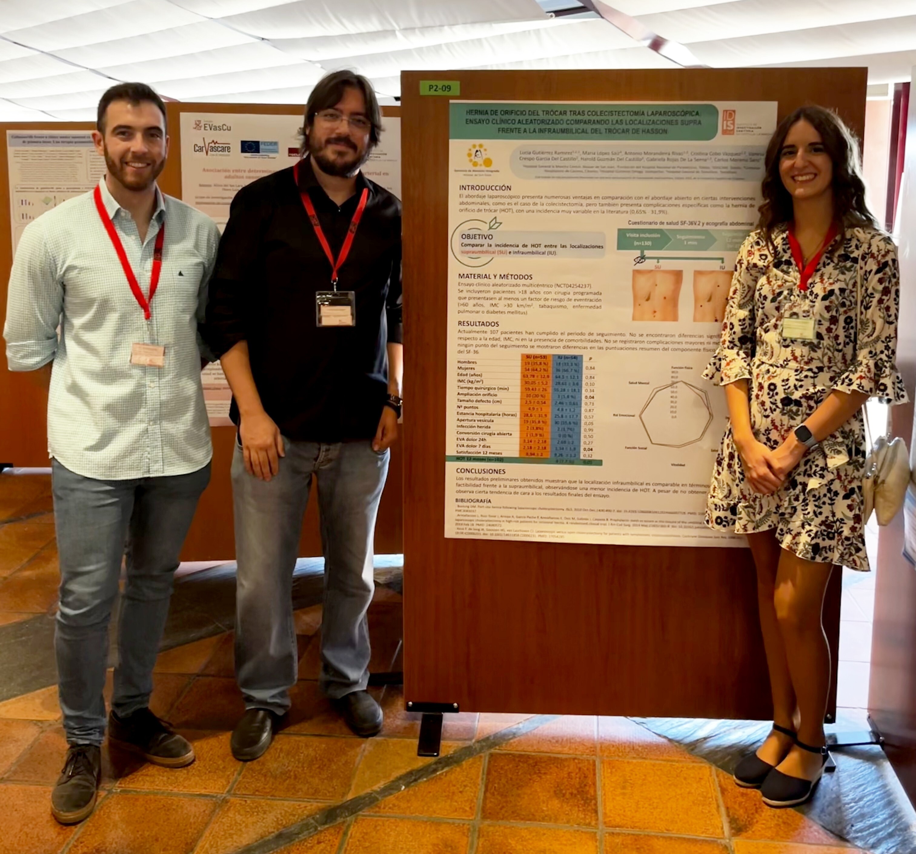 El segundo fue un póster titulado “Hernia de orificio del trócar tras colecistectomía laparoscópica: ensayo clínico aleatorizado comparando las localizaciones supra frente a la infraumbilical en el trócar de Hasson”, expuesto por la investigadora Lucía Gutiérrez Ramírez, también perteneciente al Servicio de Investigación (IDF) de la Gerencia de Alcázar de San Juan y, en este caso, al grupo de investigación adscrito al IDISCAM Investigación en Cirugía Mancha Centro.