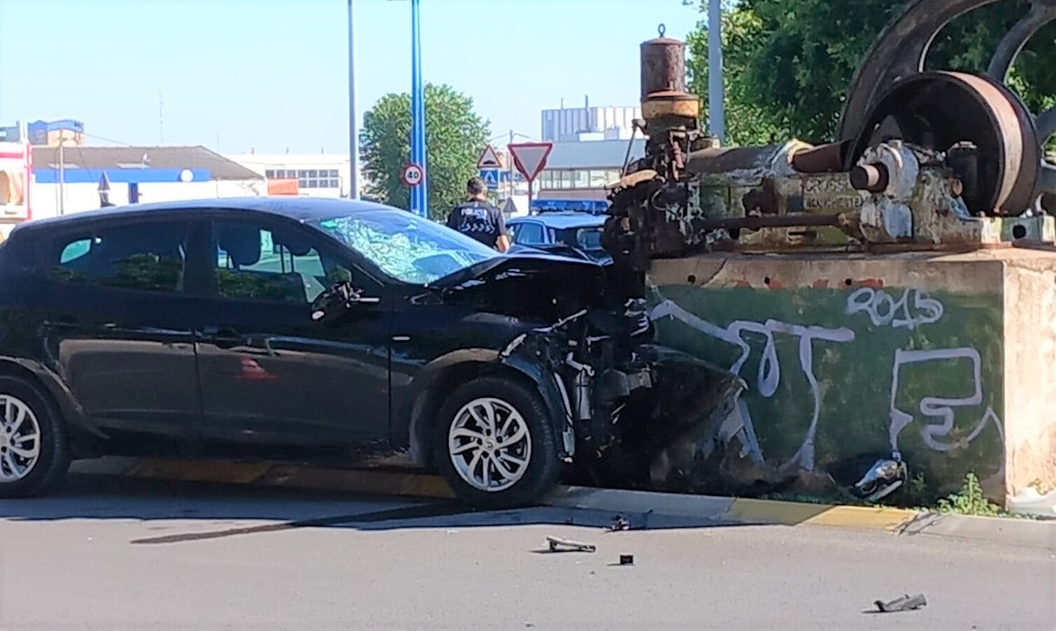 Según han informado a elsemanaldelamancha.com fuentes de la Policía Local de la ciudad, el aviso a los agentes ha tenido lugar a las 08:45 horas de este domingo, una llamada de emergencias en la que se informaba del siniestro vial, que ha tenido lugar cuando un vehículo ha impactado de lleno contra el monolito ubicado en la parte alta de la Avenida de la Constitución, junto al hospital.