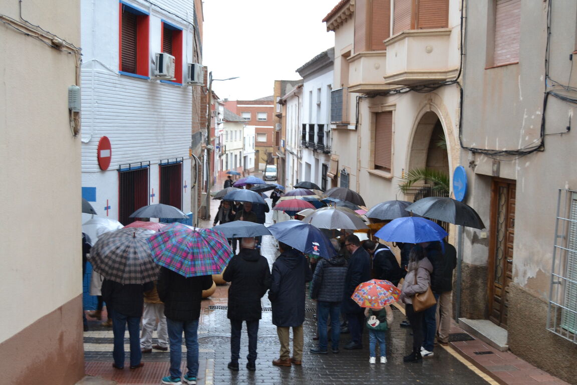 Pese a la lluvia, numerosos vecinos, hermanos y autoridades se han sumado a la cita, entre ellos, la alcaldesa Rosa Melchor, el concejal Gonzalo Redondo, el hermano mayor Carlos Ortiz y el consiliario Ángel Luis Montalvo, así como el Rvdo. Padre Pedro Aliaga, ministro provincial de la Orden Trinitaria, encargado de bendecir la nueva sede.