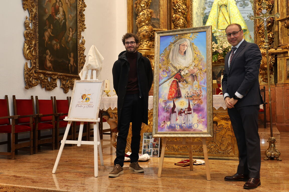 La Iglesia de Santa María acogió en días pasados la presentación del Cartel Conmemorativo del XXV Aniversario de la Hermandad Nuestro Padre Jesús del Perdón y María Santísima de la Salud, elaborado por Guillermo Soto. Un acto que dio el pistoletazo de salida a la programación que la hermandad ha organizado en torno a su primer cuarto de siglo cumplido.