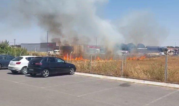 Incendio en un solar junto a Carrefour de Alcázar de San Juan obliga a desalojar vehículos del aparcamiento