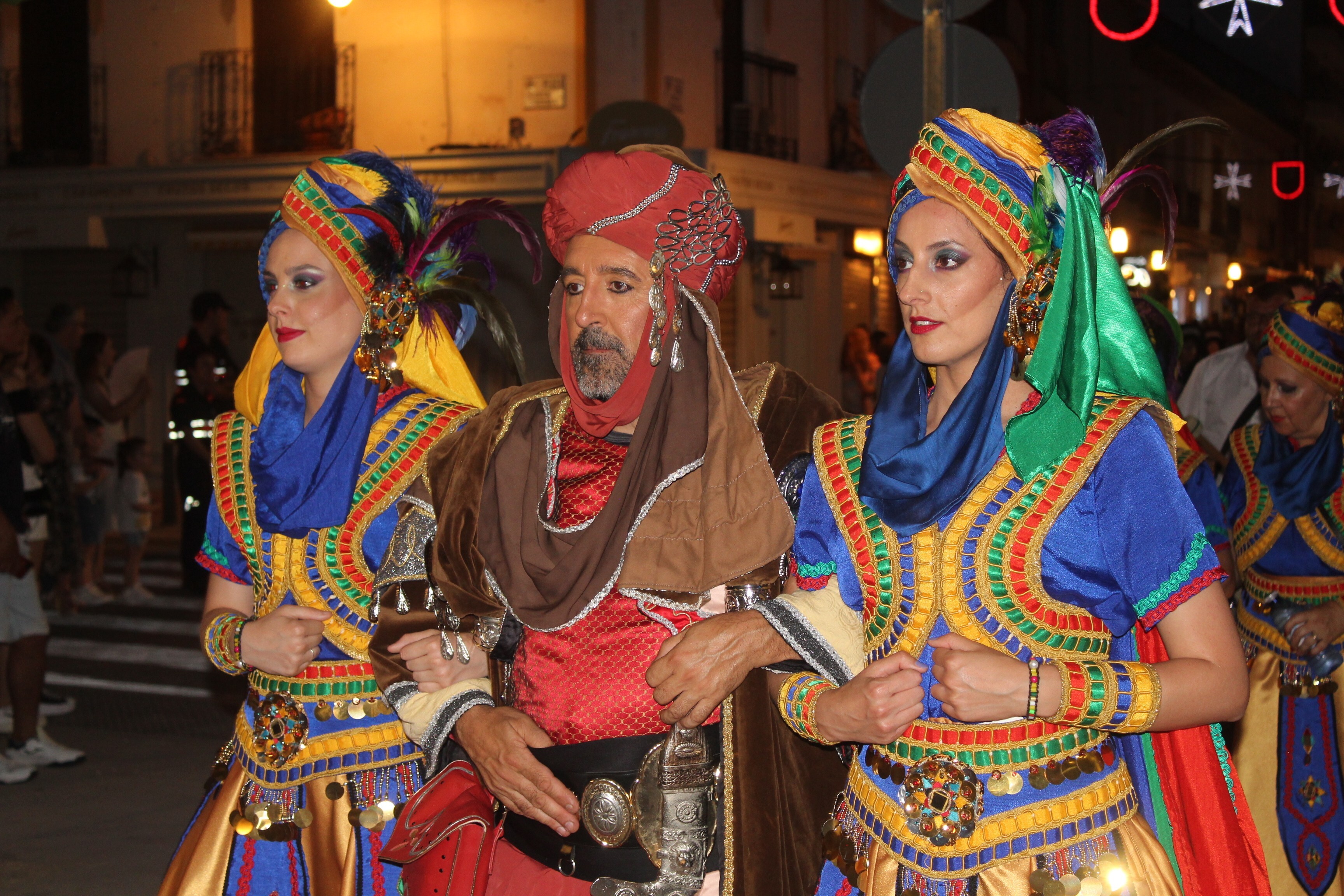 Llegada la noche, la Majestuosa Entrada Mora captó la atención de todos los vecinos y vecinas de la ciudad con un desfile impresionante, lleno de música y color. María Fresneda Guerra, candidata al Senado, estuvo presente y agradeció al Ayuntamiento por la invitación: "Es un orgullo que en un pueblo de la provincia de Ciudad Real se de este tipo de fiesta y con este ambiente que da lugar a la participación de todos". Los concejales Gonzalo Redondo, Benjamín Gallego y Javier Castellanos participaron en el desfile de la entrada mora, vistiendo sus mejores galas almorávides y viviendo la festividad desde dentro.
