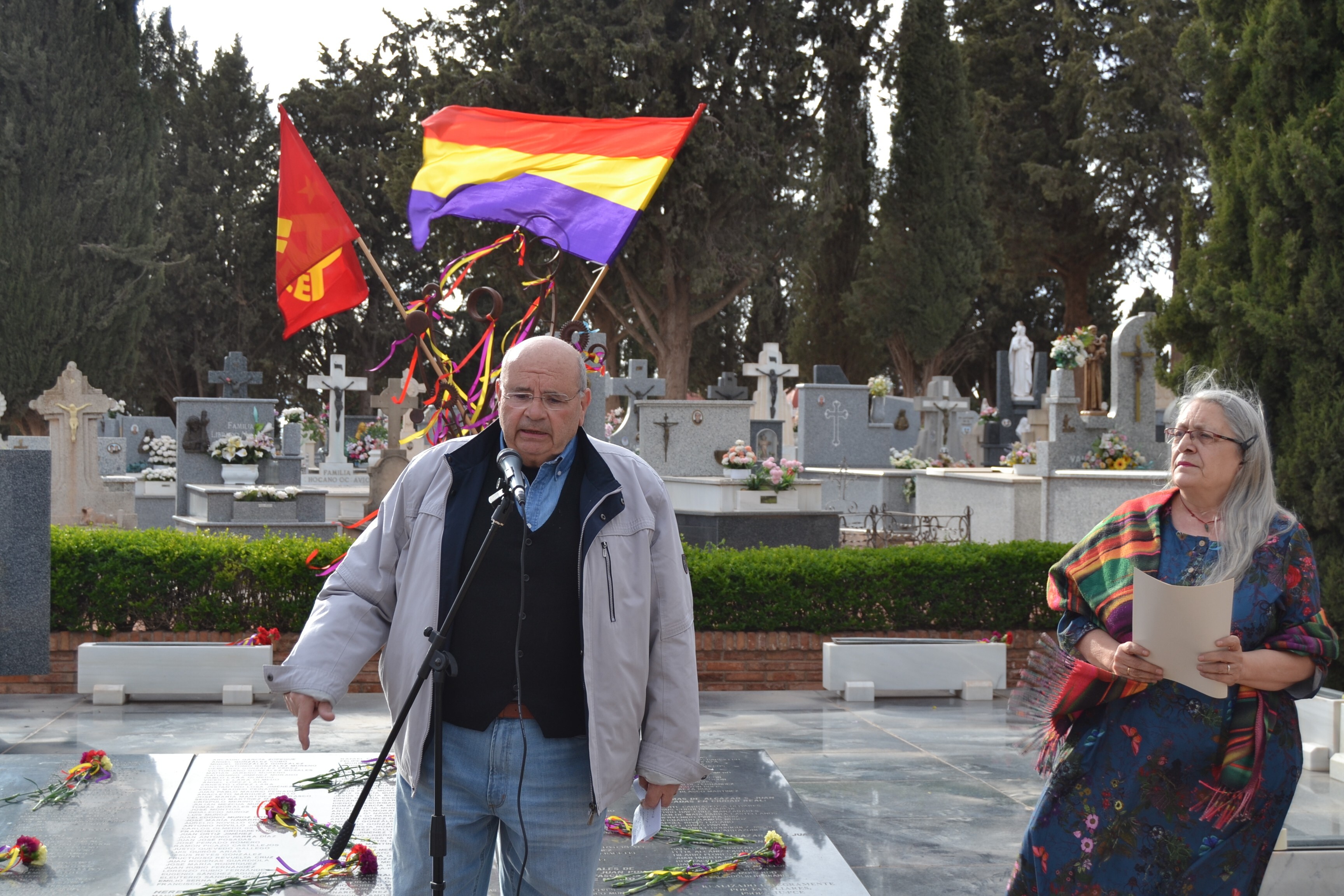 Para ello, se ha llevado a cabo un pequeño homenaje a las víctimas del fascismo en el cementerio civil, junto a la fosa común, donde Manuela Temporelli, poetisa y militante de IU, ha dirigido unas palabras a los presentes, en recuerdo de aquellos que dieron su vida en defensa de la República.