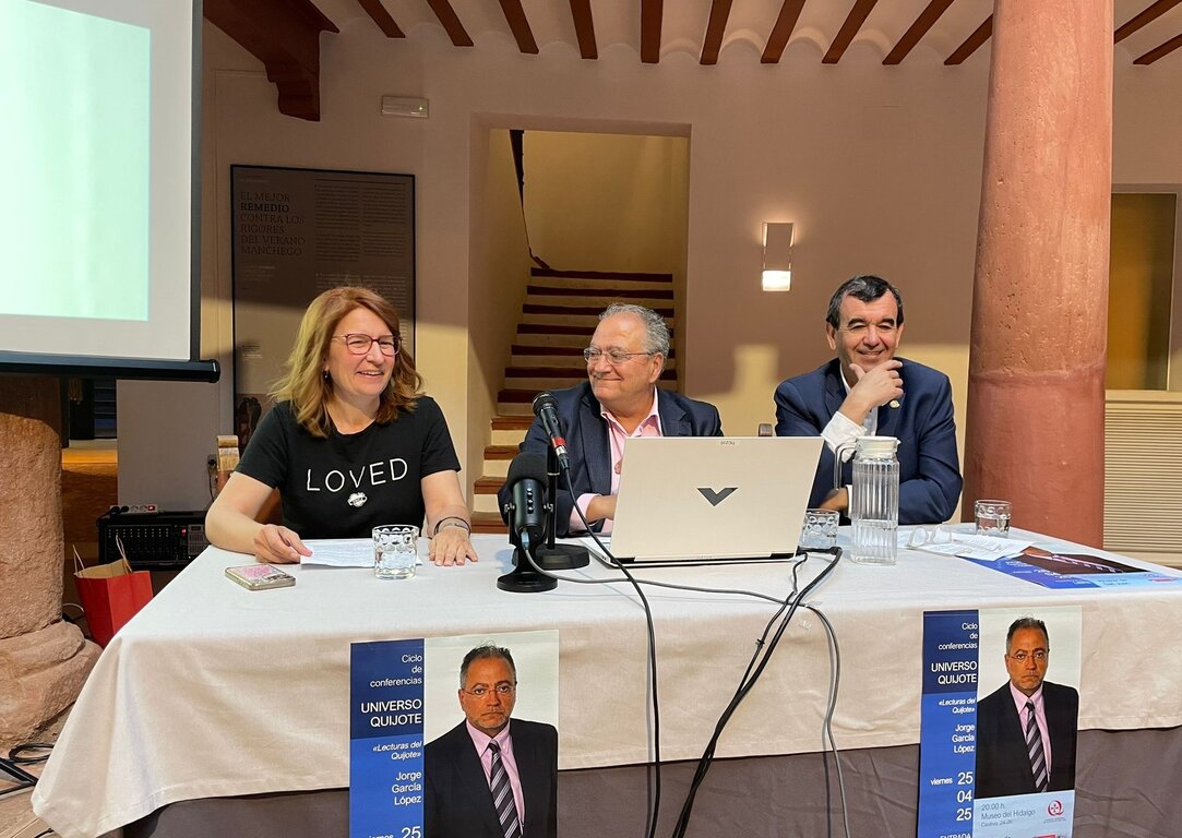 En ella, el profesor de Literatura Española e Hispanoamericana de la Universidad de Girona, Jorge García López disertó en el patio interior del Museo del Hidalgo sobre los niveles de lectura que ofrece el Quijote, profundizando en el arsenal de recursos retóricos, en el estilo de Miguel de Cervantes irónico y paródico, en el punto de vista de los narradores del texto o en la fundamentación endógena del discurso de ficción.