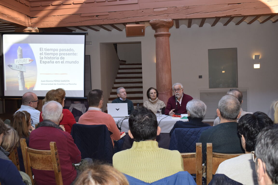El Museo Casa del Hidalgo ha acogido este sábado la presentación del libro “Breve historia de España”, del historiador Juan Sisinio Pérez Garzón, en un acto organizado por la Asociación Cultural Gigüela que ha registrado una alta participación de público y ha contado con la presencia de varios concejales del Ayuntamiento de Alcázar de San Juan, entre ellos el edil Javier Castellanos y Amparo Bremard.