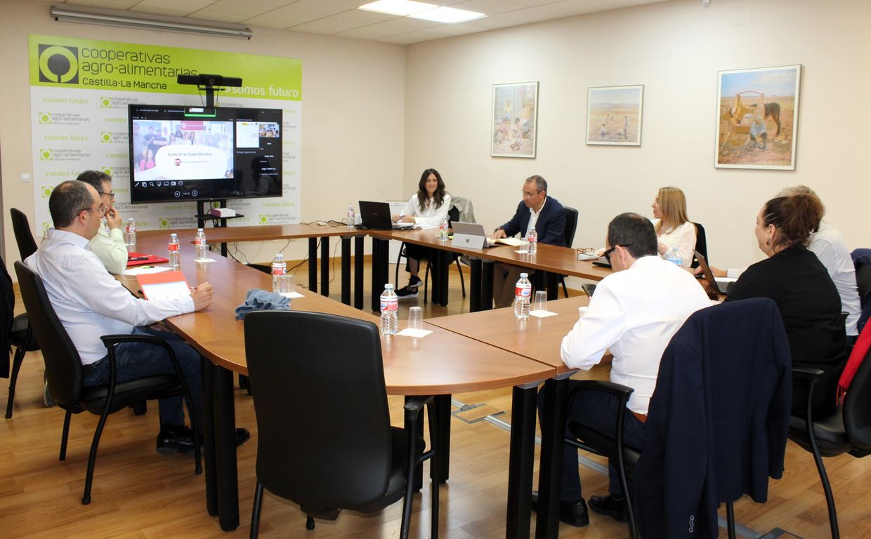 El encuentro tuvo lugar ayer jueves en la sede de Cooperativas Agro-alimentarias Castilla-La Mancha y contó con la asistencia de los miembros de la Junta Directiva, encabezada por su presidente, Juan Miguel del Real, que también es director general de la entidad cooperativa.