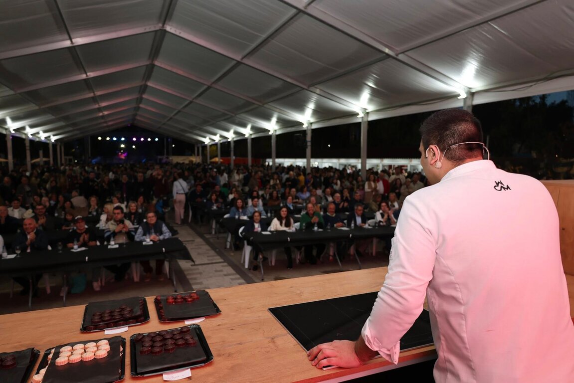 Como puede verse en las fotografías, la carpa principal de la Feria de los Sabores en Alcázar de San Juan se quedó pequeña para albergar al numeroso público que quiso participar o presenciar el taller sobre Bombonería de Autor impartido por el maestro chocolatero Jesús Quirós, campeón de España "Worl Chocolat Master".