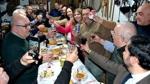 Este año, el afortunado ganador de tal premio fue el hostelero Víctor García Chocano, quien este martes ha querido abrir las puertas de su casa en Arenales, conocida como "La Moderna", para recrear una matanza (con el cerdo ya muerto y preparado), compartir mesa y gorrino y pasar una buena jornada con amigos, familiares e invitados.