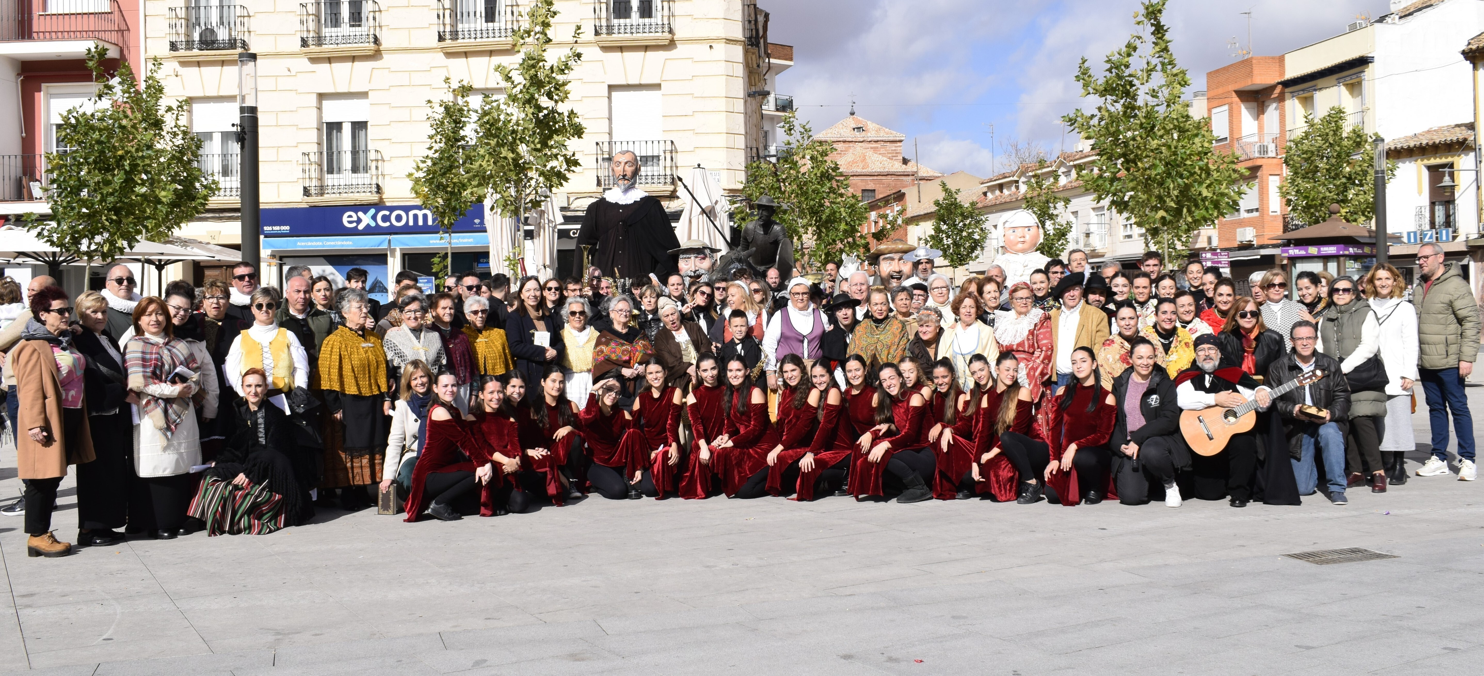 La comitiva, amenizada por los bailes de integrantes de la Escuela de Danza de Alma María García, ha partido hacia el último enclave, la Plaza Cervantes, lugar en el que la Asociación de Coros y Danzas ha bailado para todos los presentes, para acabar en esa Plaza con una jota en la que han participado todos los vecinos que han querido.