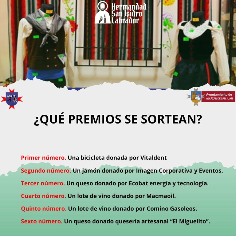 La Hermandad de San Isidro agradece el apoyo prestado por el Ayuntamiento de Alcázar de San Juan, empresas y establecimientos de la localidad, así como a todas las personas e instituciones que, de una manera u otra, colaboran para hacer posible esta entrañable fiesta popular.