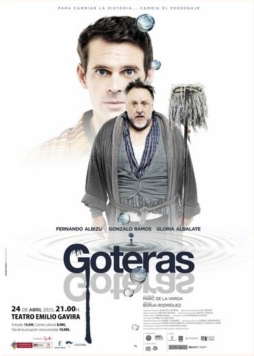 Este jueves, 24 de abril de abril, el Teatro Emilio Gavira de Alcázar de San Juan acoge la obra de teatro “Goteras”, con Fernando Albizu, Gonzalo Ramos y Gloria Albalate, a las 21:00 horas.