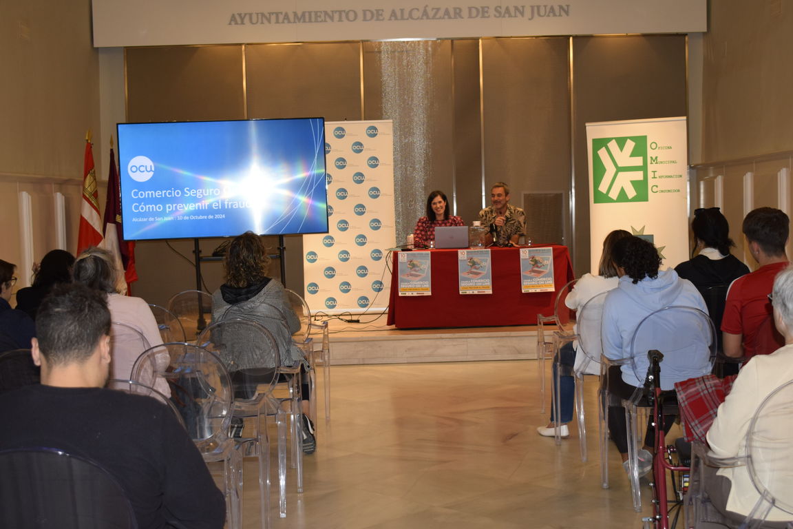 El Ayuntamiento de Alcázar de San Juan acogió este jueves una ponencia y charla sobre consumo seguro y responsable on line y sobre cómo prevenir el fraude, principalmente en todas esas compras que realizamos por internet, a veces de forma impulsiva, así cómo que hacer cuando se contrata algún servicio. La charla corrió a cargo de Itziar Fernández, delegada de la OCU en Castilla-La Mancha.