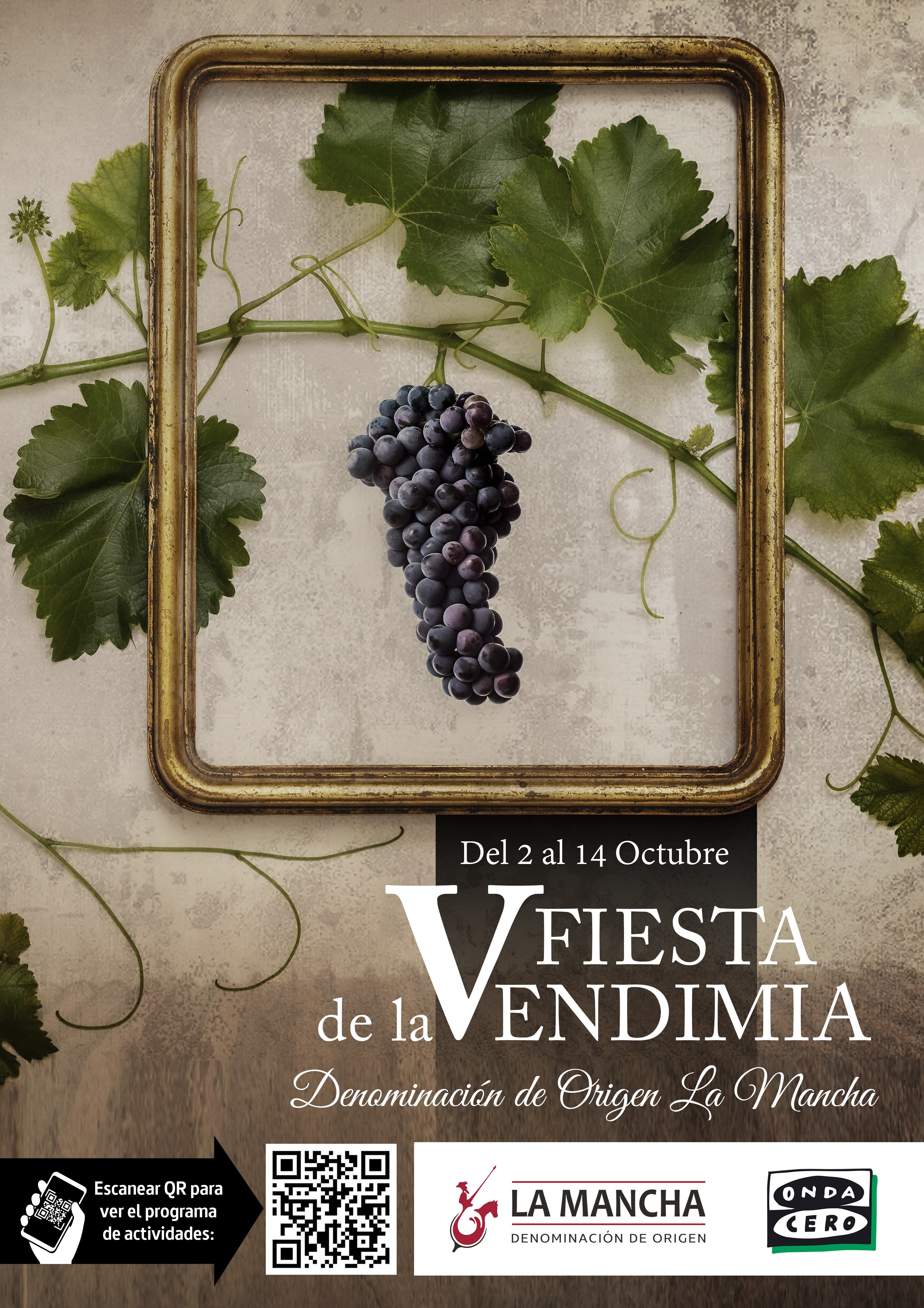La V Fiesta de la Vendimia de Onda Cero se celebra con la colaboración de la Junta de Castilla-La Mancha y la Denominación de Origen La Mancha.