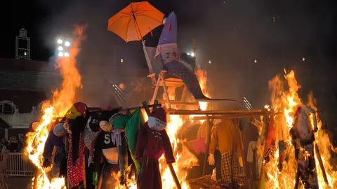 Alcázar de San Juan ha puesto punto final al Carnaval 2025 en la tarde-noche de este domingo, 28 de diciembre, con la tradicional ceremonia del entierro y quema de la Señora Sardina, junto a los peleles, en la pira crematoria instalada en la plaza de toros. Cientos de personas se han congregado en el recinto para despedir, entre llamas y disfraces, una edición del Carnaval, que ha destacado por la alta participación y el ambiente festivo.