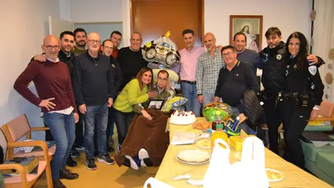 Rodeado de gran parte de la plantilla de policía local de Alcázar de san Juan, el oficial Julio Romero ha celebrado este jueves su 50 cumpleaños. Como puede verse en las fotografías, en su fiesta no han faltado los regalos.ni los globos ni la tarta. Un día muy especial que sus compañeros han querido compartir con él para rendirle un merecido homenaje, darle fuerza y muchos ánimos y reconocer su ejemplo de superación y resistencia frente a la enfermedad.