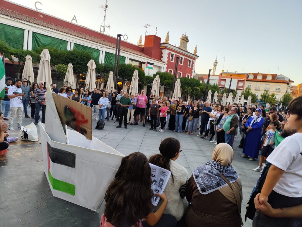 La Plaza de España de Alcázar de San Juan ha vuelto a ser escenario esta tarde de una concentración convocada por la Plataforma en Defensa de Palestina, en la que decenas de vecinos se han reunido para denunciar el ataque sufrido por la flotilla humanitaria que intentaba llegar a Gaza con alimentos y ayuda básica.