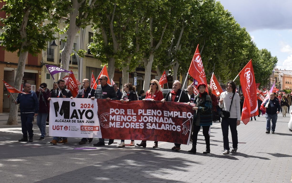 “Pleno empleo, menos jornada y mejores salarios”, éste ha sido el lema que ha presidido este 1º de Mayo la manifestación convocada por los sindicatos en Alcázar de San Juan, en la que han participado decenas de personas desde el Centro de Mayores hasta la estación del tren, donde se ha leído el manifiesto de este año.