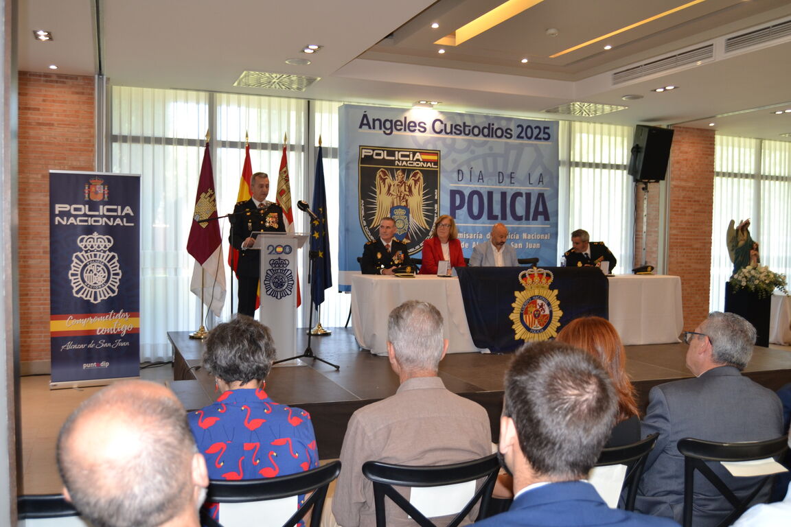 La Policía Nacional de Alcázar de San Juan ha conmemorado este miércoles la festividad de los Santos Ángeles Custodios, patronos del cuerpo, con el tradicional acto institucional y de entrega de reconocimientos celebrado en el hotel Intelier Airén, al que han asistido autoridades locales, representantes de distintos cuerpos de seguridad y numerosas personas y entidades colaboradoras. La jornada, como es tradicional, ha comenzado con una misa en la parroquia de San Rafael.