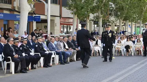 La Policía Nacional de Alcázar de San Juan ha celebrado este lunes, a las puertas de su Comisaría, el acto oficial de la festividad de sus patrones, los Ángeles Custodios, un acto que ha estado repleto de reconocimientos, menciones especiales y un homenaje a los caídos de azul con una corona de laurel en los que han estado presentes los agentes nacionales, locales, Guardia Civil, autoridades y buena parte de la sociedad civil alcazareña invitada a este evento, que ha terminado con un vino español en la sede del Consejo Regulador de la Denominación de Origen La Mancha.
