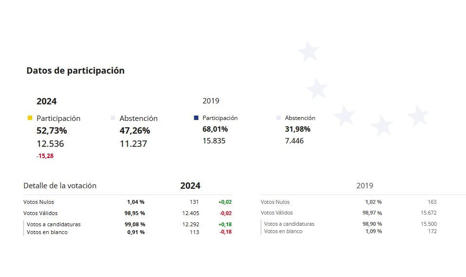 La participación ha sido del 52,73%, 15 puntos menos que en las elecciones europeas de 2019.