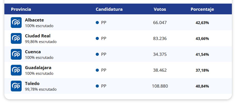 A NIVEL REGIONAL, EL PP GANA EN TODAS LAS PROVINCIAS DE CASTILLA-LA MANCHA