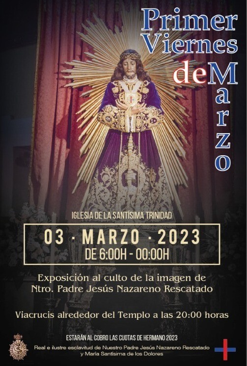 La tradición de besar el pié a la imagen de Jesús Nazareno en el primer viernes de marzo en Alcázar de San Juan tendrá lugar mañana en la iglesia de la Santísima Trinidad, desde las seis de la mañana hasta las doce de la noche en horario ininterrumpido, horario en el que estará expuesta al público la imagen de Nuestro Padre Jesús Nazareno.