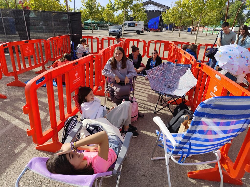 Hacia las 10:00 horas, el número de asistentes en cola superaba la decena, en su mayoría jóvenes que portaban mochilas, botellas de agua y muchas ganas de ver al artista manchego. Entre las presentes se encuentra la artista Esther Moya González, que lleva desde esta mañana realizando un retrato de Dani Fernández.