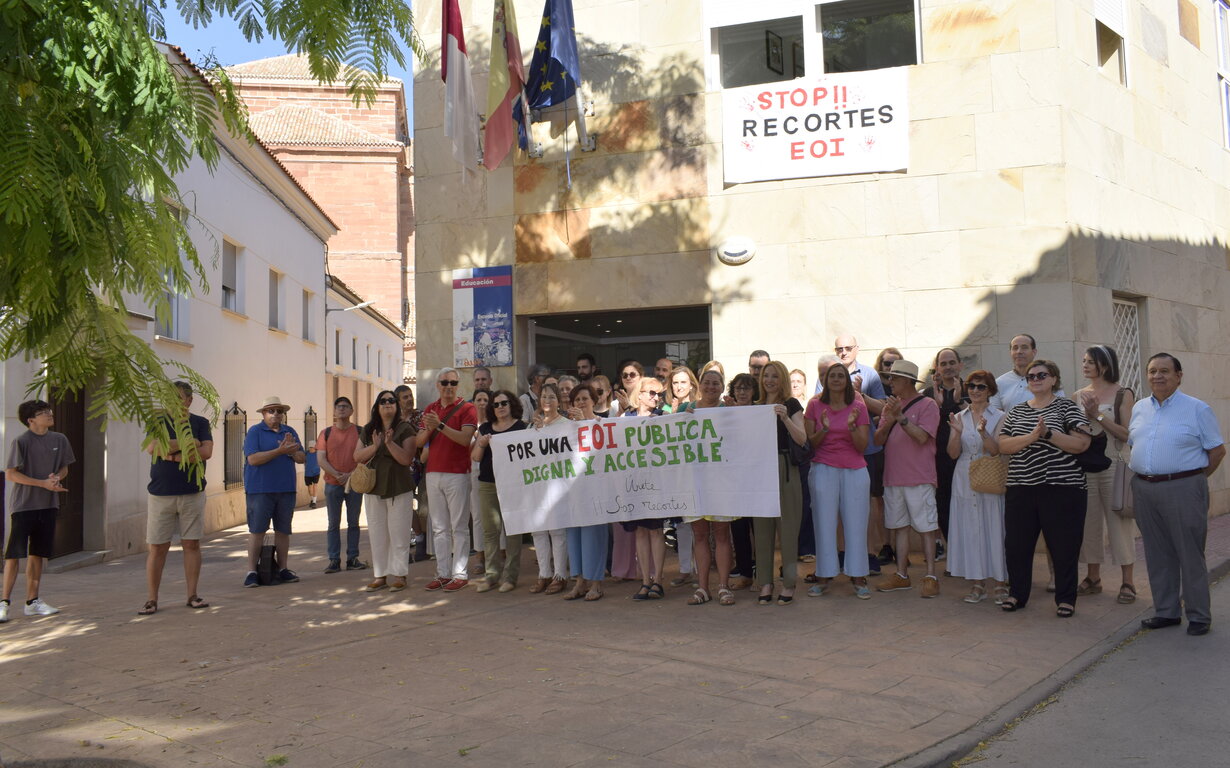Profesores y alumnos de la Escuela Oficial de Idiomas (EOI) de Alcázar de San Juan se han concentrado este jueves, en la puerta del centro, para protestar por “los recortes” que pretende realizar la Consejería de Educación en todos los centros de idiomas de la región y en este caso en concreto en el de Alcázar, “que supondrá la imposibilidad de poder ofertar todos los niveles de los idiomas alemán, francés e italiano, la masificación de los grupos de inglés y la falta de plazas para nuevos alumnos”, tal como ha señalado el director del centro, Ángel Peces.