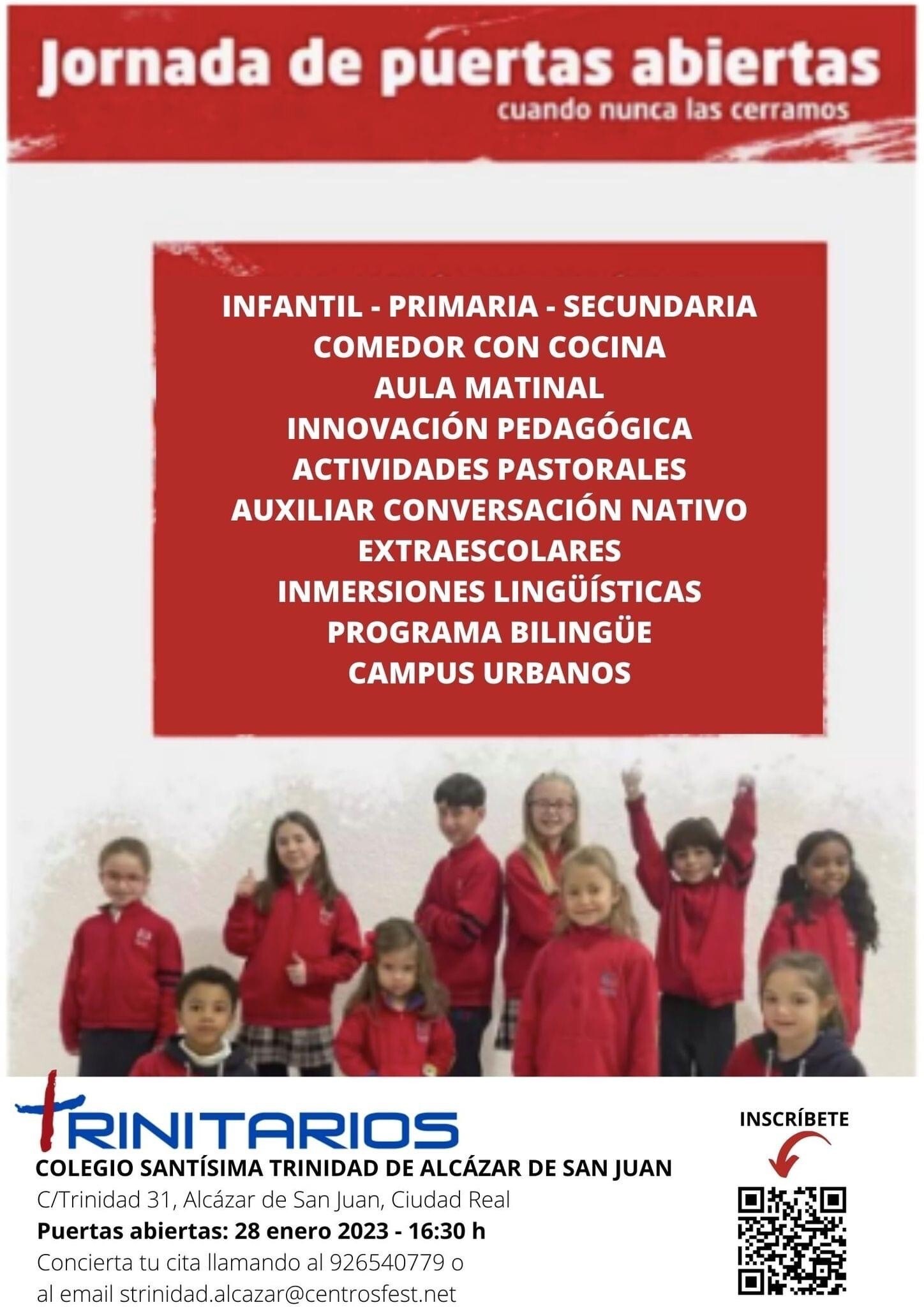 El Colegio Santísima Trinidad de Alcázar de San Juan celebra Jornadas de Puertas Abiertas (hasta finales de febrero) de forma individual y presencial, mediante cita previa.