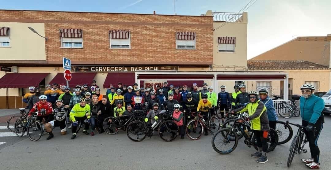 Y como todo lo espontáneo es difícil de manejar, se dijeron algunas palabras… su amigo Víctor se entusiasmó adivinando pedaladas celestes y el pelotón fue cobrando forma desde el cementerio ocupando varios grupos de quince unidades para facilitar los adelantamientos en una marcha no autorizada, no comunicada a ninguna autoridad. Como suele suceder, hay quien compite hasta en los paseos con su familia y, como no podía ser menos, impusieron un ritmo no apto para todas las capacidades. Menos mal que también Pepe Pinar, prestó su generosa colaboración cerrando la marcha con la furgoneta de la Titán para posibles emergencias.