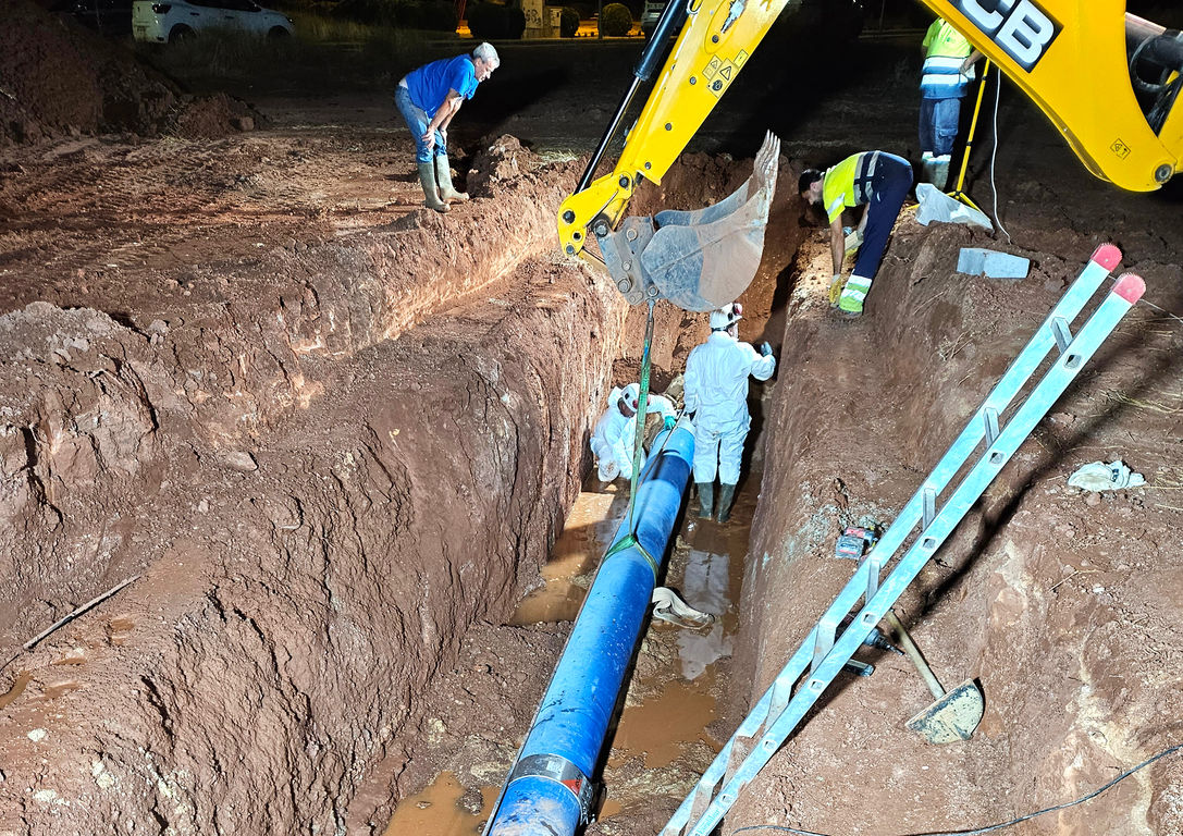 En total, estuvieron trabajando, durante las horas que duró la actuación, seis personas además de los dos maquinistas, con todos los medios necesarios para asegurar la continuidad del servicio a la población en todo momento, dado el contexto de dificultad y escaso margen de tiempo que había para solucionar la avería. Al final, objetivo cumplido: que la población no notara ningún problema en el abastecimiento.