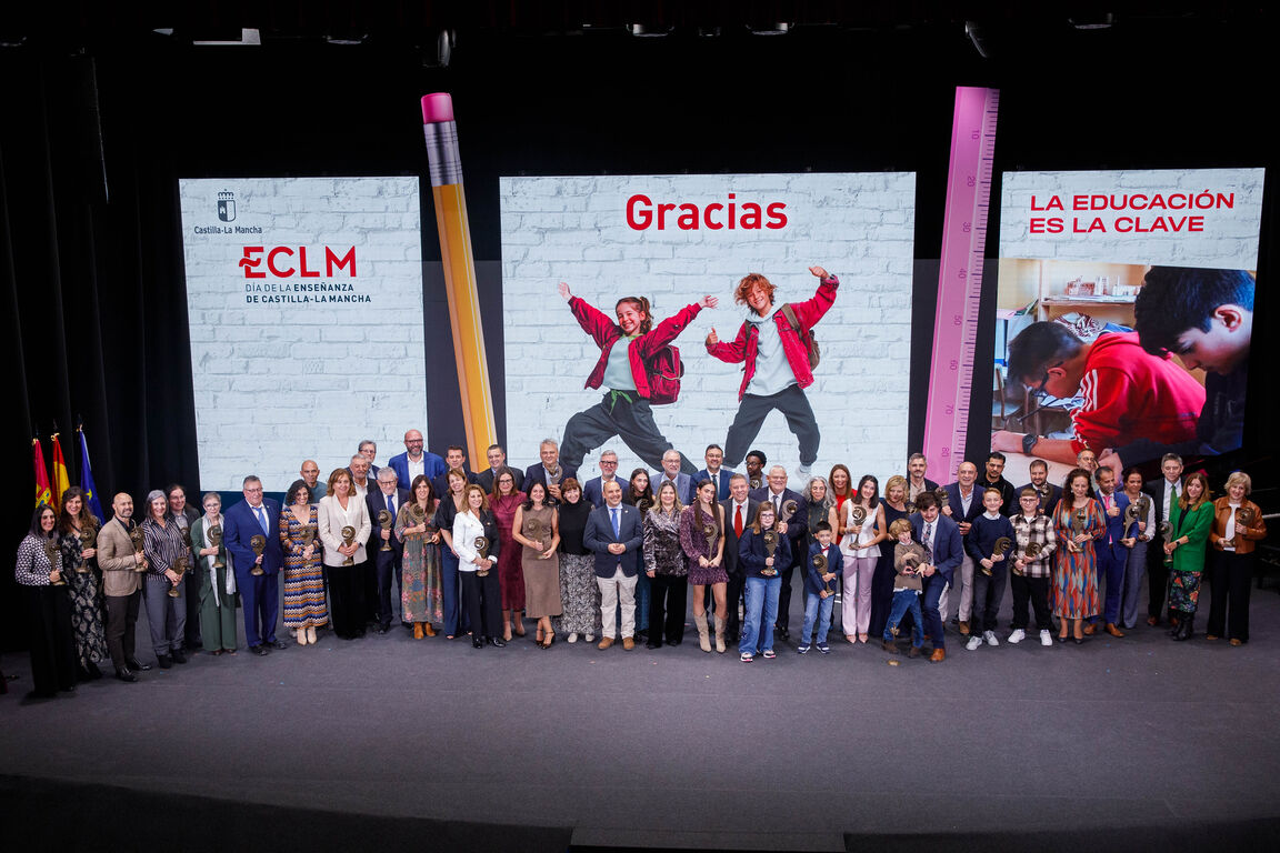 Durante la gala, presidida por el presidente regional Emiliano García-Page, y con la asistencia de autoridades como la alcaldesa de Consuegra, María Luisa Rodríguez, y el consejero de Educación, Cultura y Deportes, Amador Pastor, se han entregado un total de 32 distinciones a centros, docentes, alumnado, personal de administración y entidades colaboradoras.