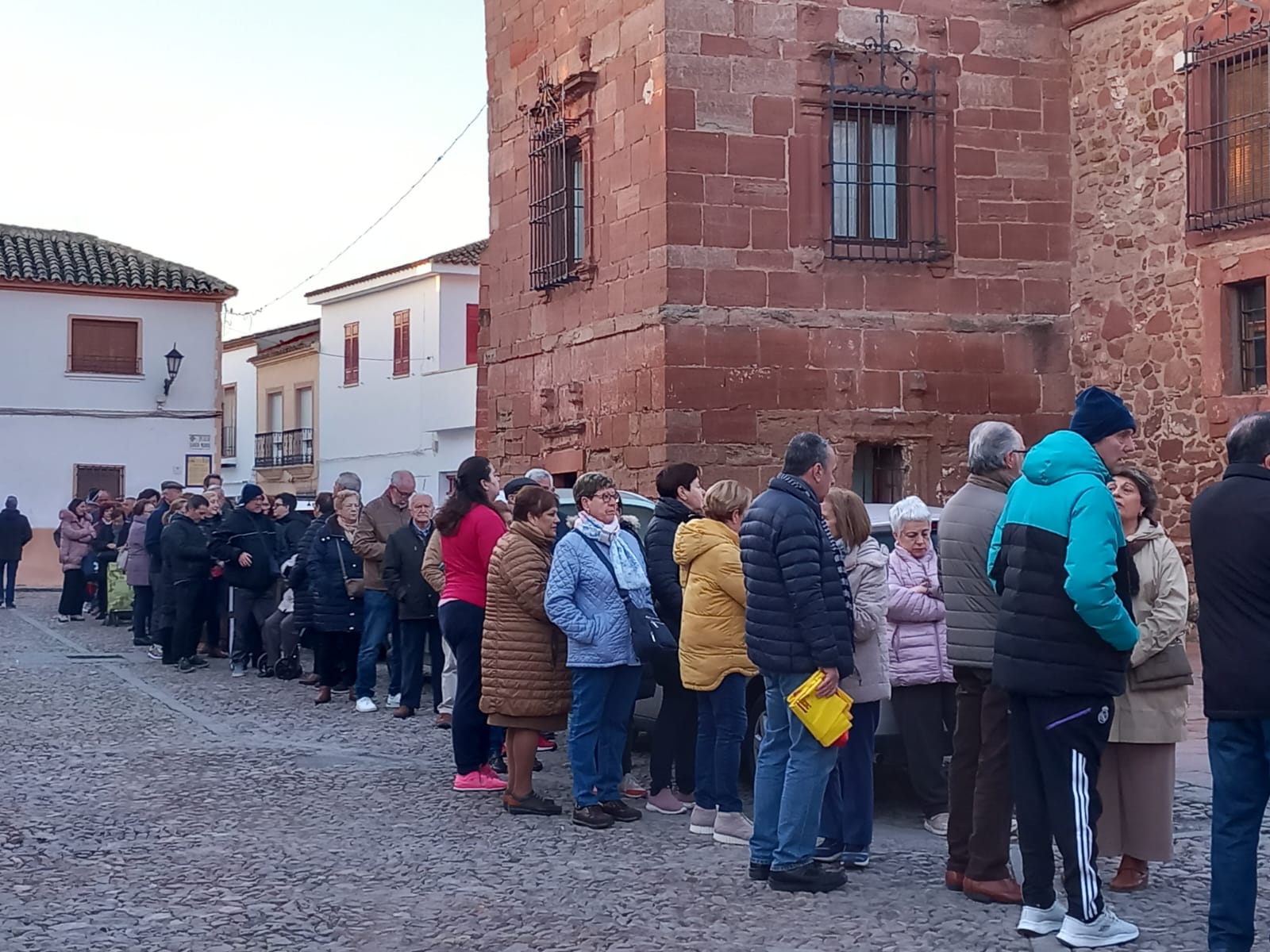 Desde las ocho horas y durante prácticamente toda la mañana, numerosos vecinos de Alcázar de San Juan han aguardado pacientemente turno en la plaza de Santa María para comprar los típicos rosquillos de San Blas puestos en venta, como cada 3 de febrero, en la Parroquia.